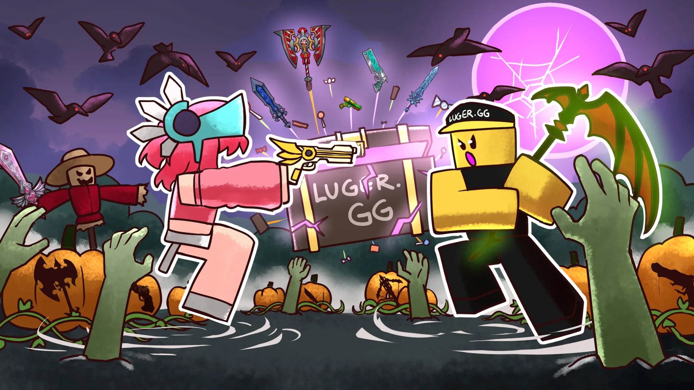 Bioblade, Darkbringer, Eggblade, Eternal 3, Eternal 4, Gemstone, Heartblade, Lightbringer, Nebula, Prismatic, Amerilaser, Blaster, Blue Seer, Clockwork, Deathshard, eternal, Eternal 2, Fang, Flames, Heat, Laser, Luger, Nightblade, Old Glory, Orange Seer, Pixel, Purple Seer, Red Seer, Saw, Green Seer, Shark, Slasher, Tides, Virtual, Yellow Seer, America Gun, Blood Knife, Ghost Knife, Golden Gun, Laser (Disintegrator), Phaser, Prince, Shadow, Splitter, Icebreaker, Icewing, Logchopper, Candycane, Chill, Cookieblade, Eternalcane, Frostbite, Frostsaber, Ginger Luger, Gingerblade, Green Luger, Handsaw, Ice Dragon, Ice Shard, Iceblaster, Jinglegun, Lugercane, Minty, Peppermint, red Luger, Snowflake, Sugar, Winter's Edge, Xmas, Batwing, Elderwood Scythe, Hallowscythe, Battleaxe, Battleaxe 2, Boneblade, Elderwood Revolver, Ghostblade, Hallow's Blade, Hallow's Edge, Hallowgun, Pumpking, Spider, Vampire's Edge, Deathspeaker, Electro, Fire Bat, Fire Bear, Fire Bunny, Fire Cat, Fire Dog, Fire Fox, Fire Pig, Frostbird, Ice Phoenix, Icey, Phoenix, Sammy Eagle, Skelly, Steambird, Traveller, and <3